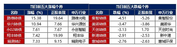 【转债市场主要指数集体跟涨】 4月22日,转债市场跟随权益市场明显走强,中证转债、上证转债、深证转债分别收涨0.71%、0.66%、0.79%。当日转债市场成交额804.00亿元,较前一交易日放量53.51亿元。转债市场个券多数上涨,341只转债中,244只收涨,86只下跌,11只持平。当日上涨个券中,路维转债涨超15%,华兴转债涨超10%;下跌个券中,集智转债跌逾4%,美诺转债、天创转债跌逾3%。
