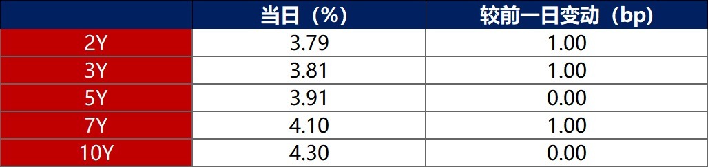 4月22日,各期限美债收益率走势分化。其中,2年期美债收益率上行1bp至3.79%,10年期美债收益率则保持在4.30%不变。